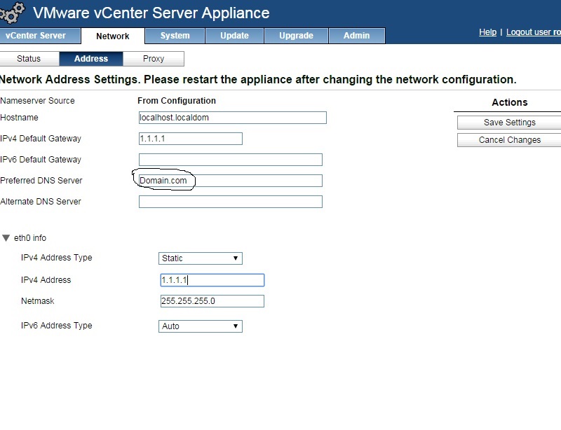 Once OVF file is imported , I have configured the IP/Subnet/DNS/Firewall in the initial setup and left hostname as default and later by login to the webclient , configured the hostname and connected the VC to the AD domain , after rebooting the VC , found the AD name instead of DNS IP in the DNS entry. Manually i modified the same with appropriate DNS ip and rebooted the appliance but still found the domain name on the DNS entry.