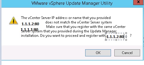 Once we provided the VC IP it will show the warning and we have to accept and reboot the VUM service on VUM server.