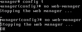 Type Config t and then type no web-Manager , it will stop the Web Manager service.