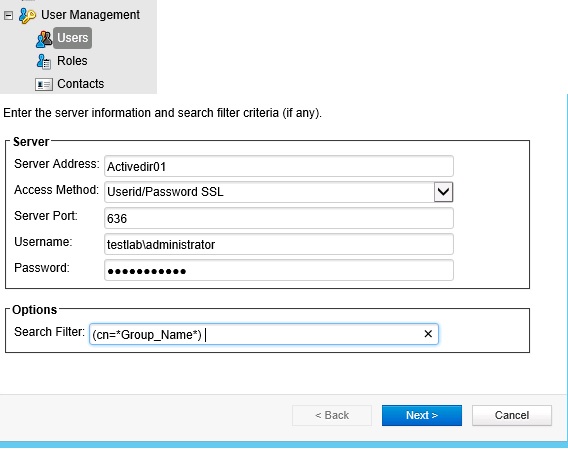 Go to Administration-User Managment – Synchronize with Directory and Provide the below AD Server information. By using the query (&(objectClass=user)(| (cn=User1 *)(cn=User2*)(cn=User3*))) we can import the individual users and for the group use the query (cn=*Group_Name*) , Once its imported then we can add to the appropriate roles.