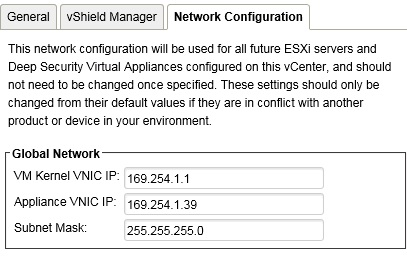 Once we added the vCenter and the vSheild Amanger, we can see the two IPs in the network configuration properties ( VM Kernel VNIC IP and Appliance VNIC IP ). It is the default IPs assigned on 169.254.1.1/24 , If need we can change the same but need to do before the filter driver installation on the ESX host.