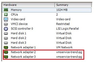 The second and third vNIC of the DSVA should connect to vmservice-trend-pg: