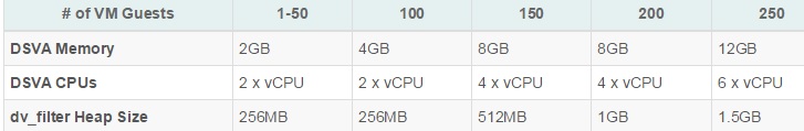 By default, DSVA is assigned 2GB of memory. Here is the recommended memory for the DSVA machine, depending on the number of virtual machines per ESXi Host.