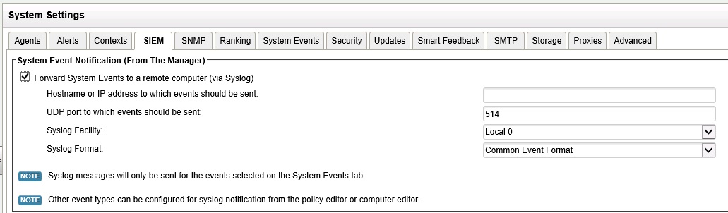 If you configure Deep Security Manager to forward syslog events to an SIEM server, all the events found under Administration >> System Settings >> System Events will be sent to the SIEM Server.