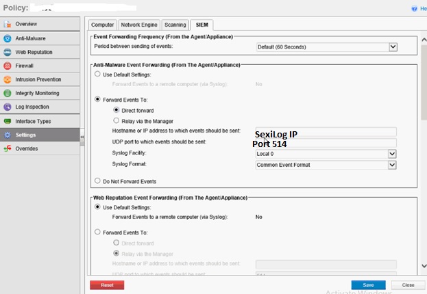 We need to configure it in the policies to send the events to the syslog server so that if any general events in DSM and also Malware events happened in the VM level then it will forward those events to the syslog server and we can monitor it from the logs.