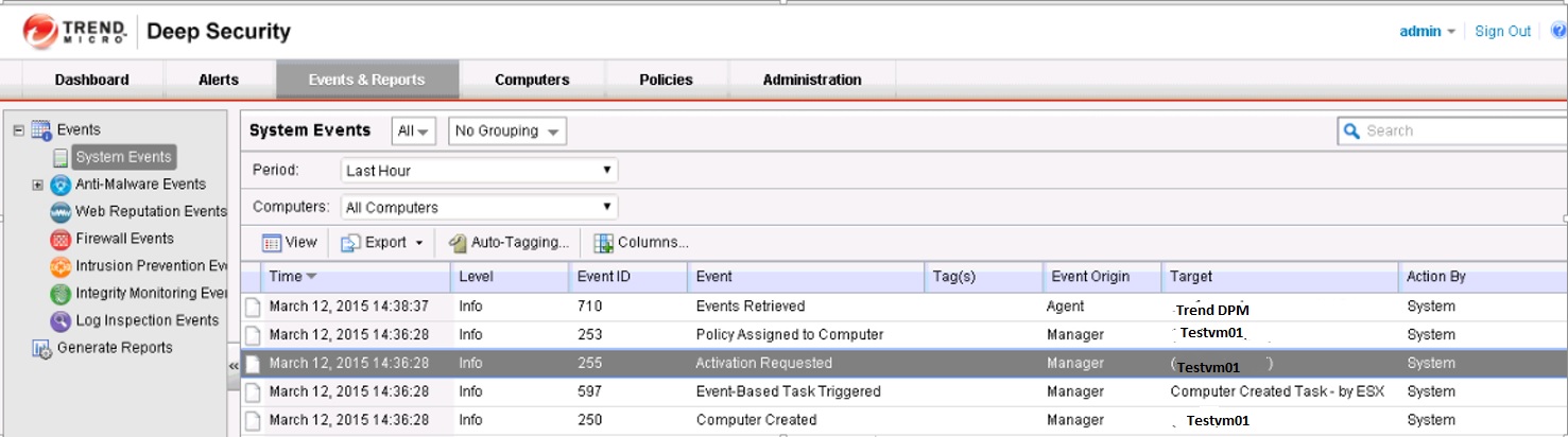 In the Trend DSM Console we can see the New VM is in activated status.
