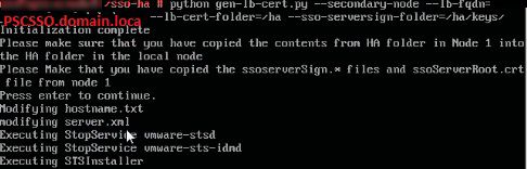 python gen-lb-cert.py –secondary-node –lb-fqdn=load_balanced_fqdn –lb-cert-folder=/ha –sso-serversign-folder=/ha/keys