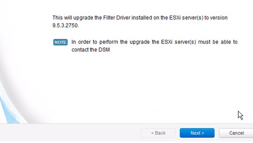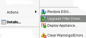 To Upgrade the ESX Hosts – Select the Hosts – Right Click – Select Actions – Upgrade Filter Driver.