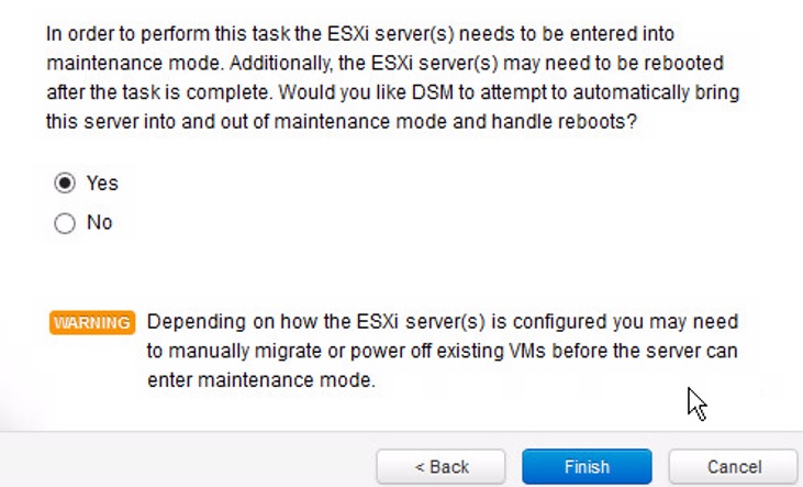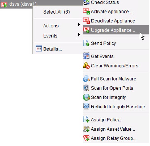 To upgrade the DSVA, it is a similar process. Right-Click on the DSVA(s) you wish to upgrade > Select Actions > Upgrade Appliance