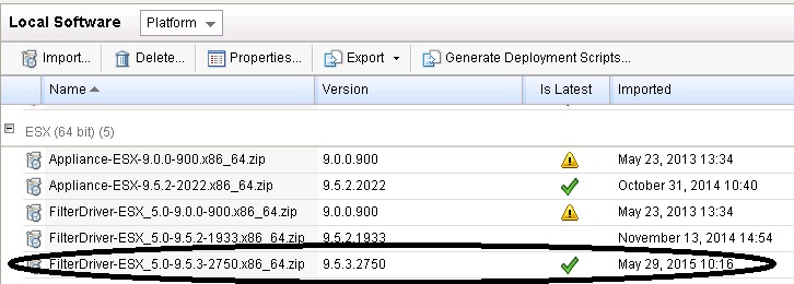 Once uploading the Filter Driver , we can notice the ESX hosts will show a status of “Upgrade Recommended ”