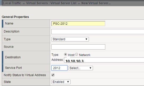 All other ports: 2012, 2014, 2020, 389, and 636. All settings are the same, except there is no SSL Profile (Client) or SSL Profile (Server) and the Service Port and Default Pool should match. For example, if the Service Port is 2012, the Default Pool should be the pool set up for port 2012.