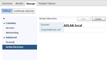 Note it wont show the domain in GUI AD option like other PSC but still it is authenticated with the AD domain.