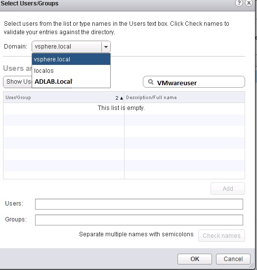Next we have to add the appropriate AD Groups and the Users to the roles we want to access the VC.