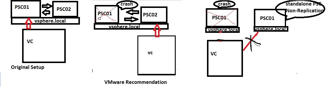 I want to share here is to repoint or reconfigure the VC from one external PSC to another external PSC , it should be configured as the replication partner and anything which is standalone or fresh external PSC then it wont work.As per VMware we need to do manual changes to do the same and no document is available.