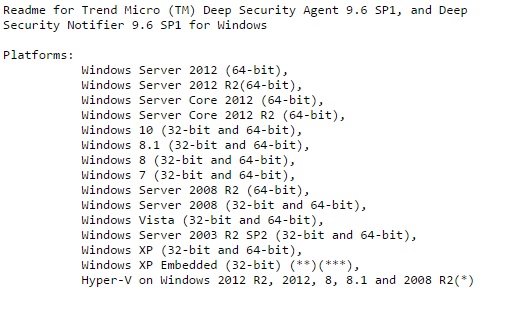 http://docs.trendmicro.com/all/ent/ds/v9.6_sp1/en-us/DS_Agent-Windows_9.6_SP1_readme.txt