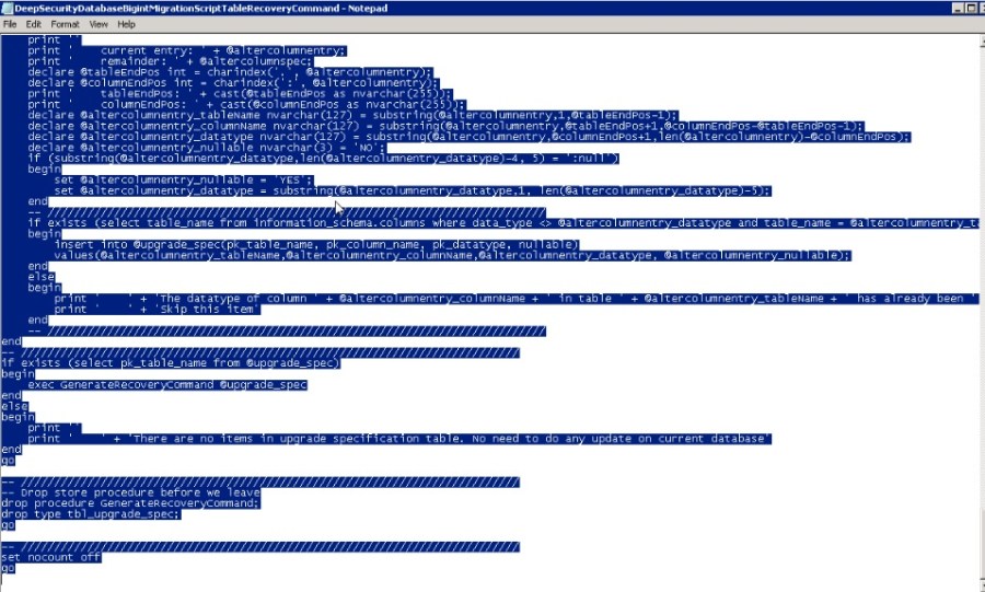 Manually updating the Deep Security Manager (DSM) database before upgrading to 9.6 SP1 – Part -4