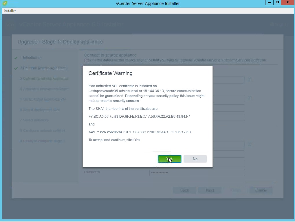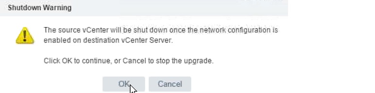 It will show the warning that source VCenter will be shoutdown.