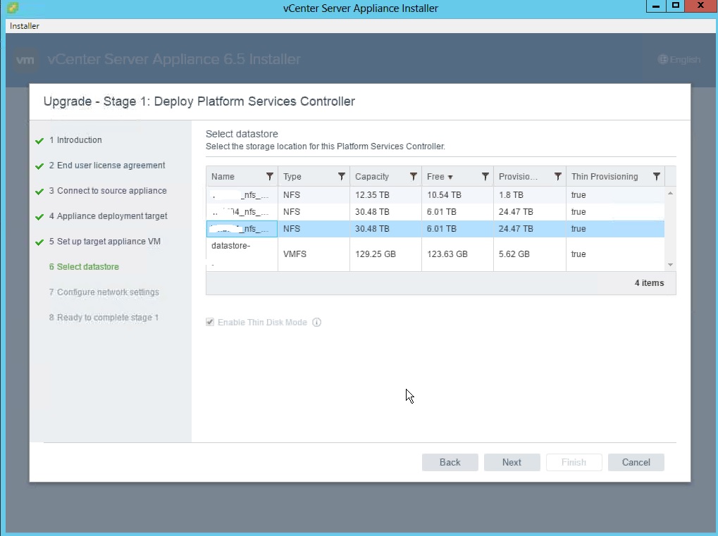 Select the datastore