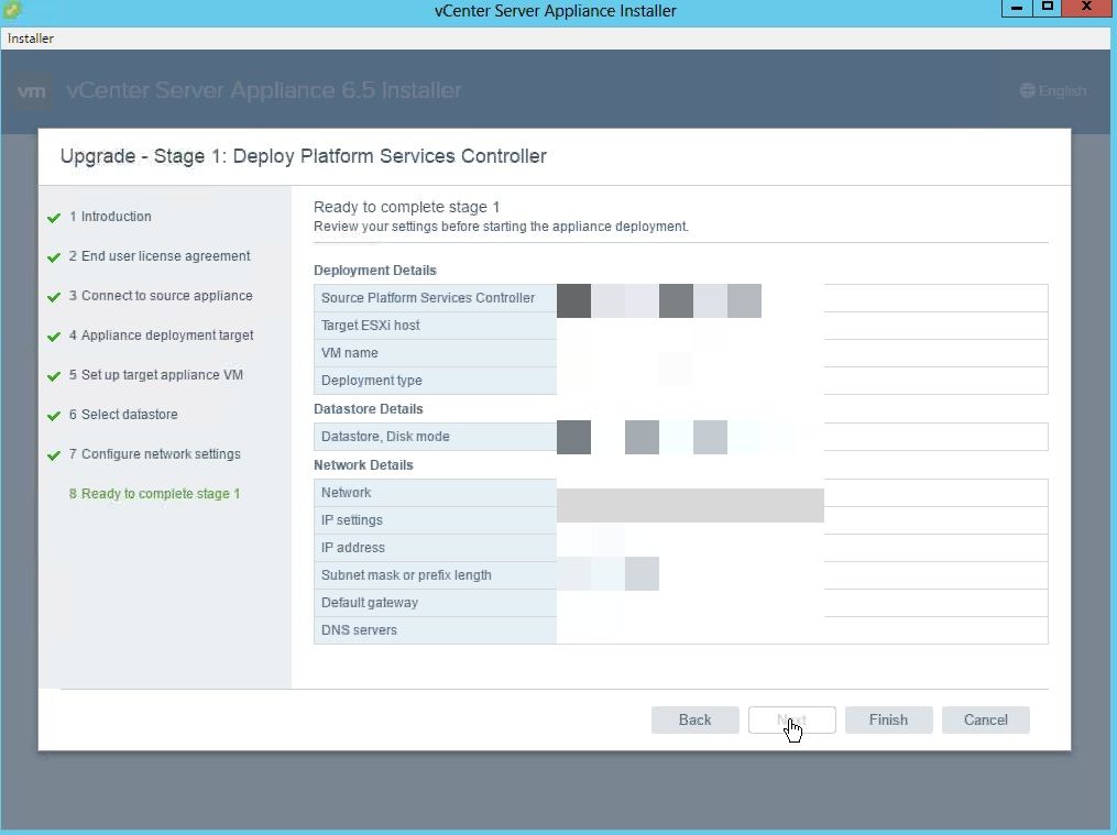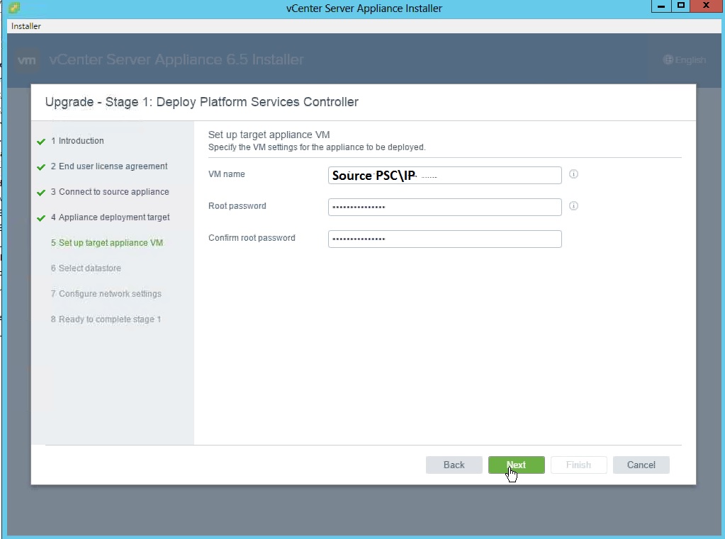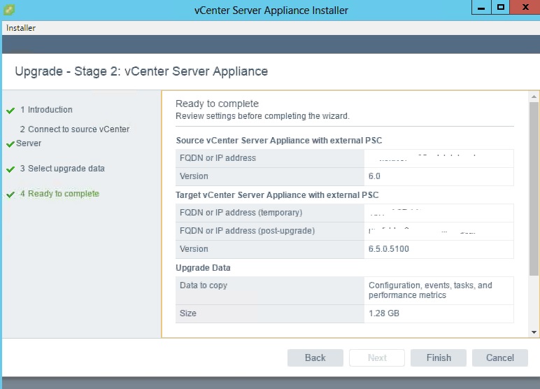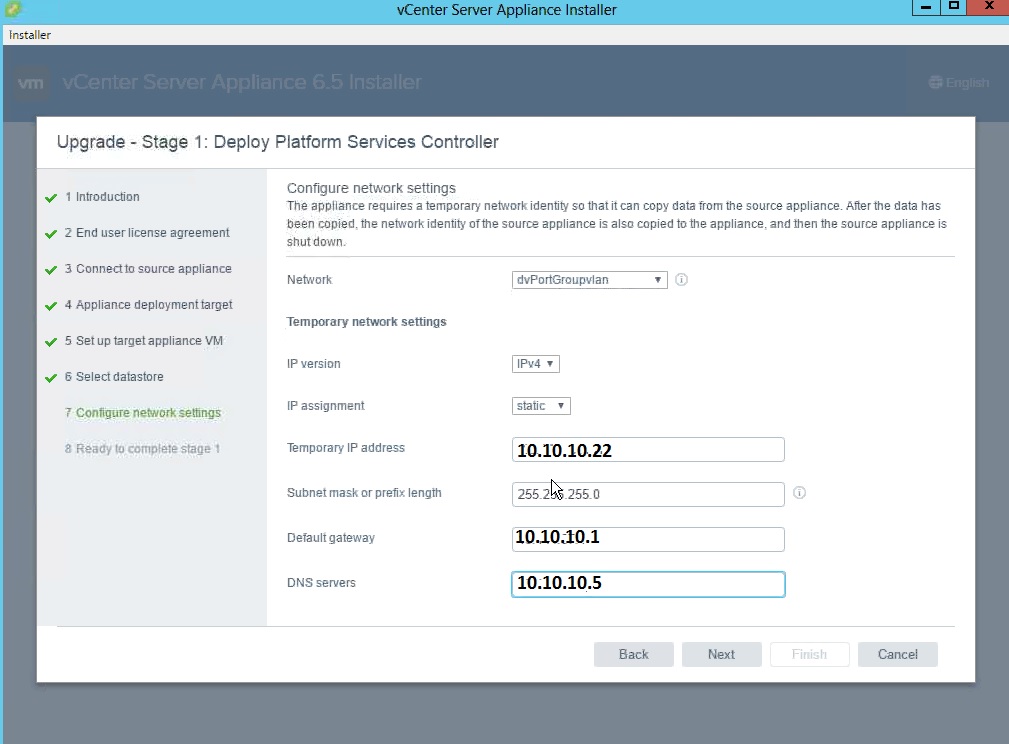 Another important thing is we need one temporary IP for migrating the data from the OLD version to the new psc\VC 6.5.