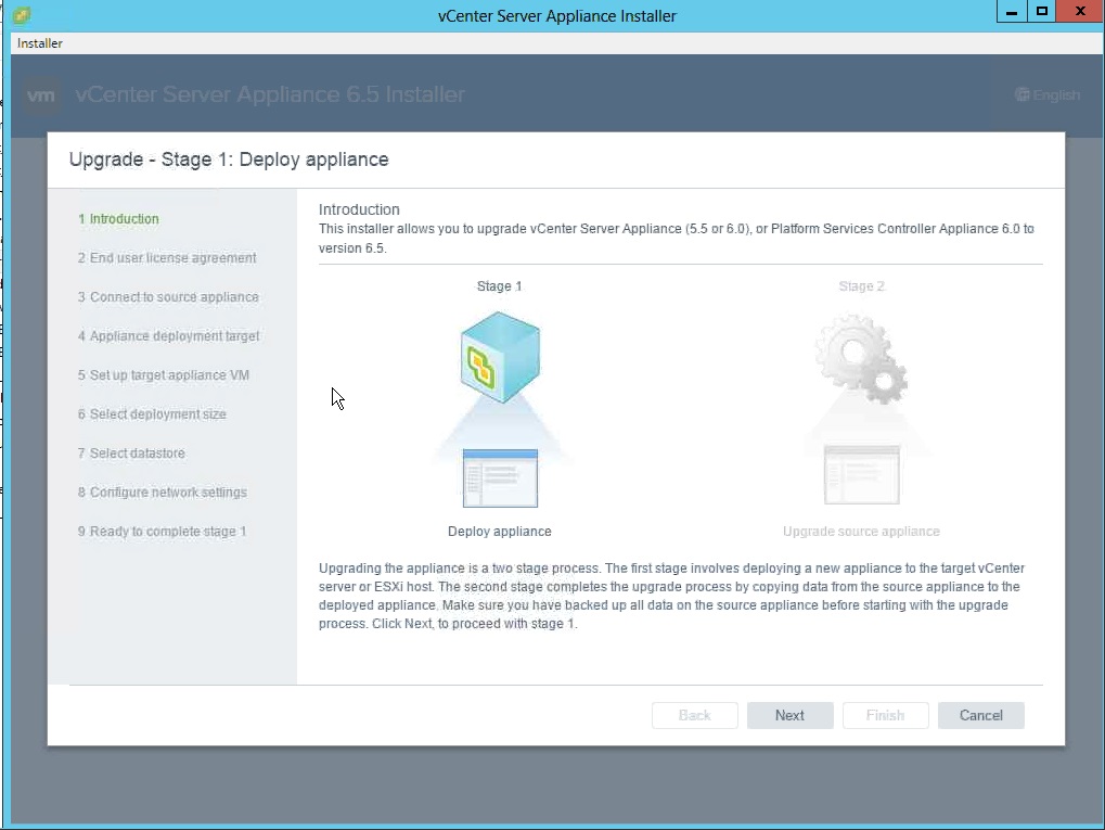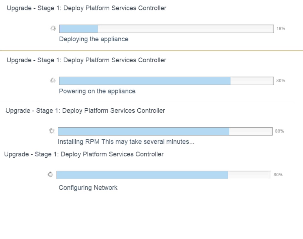 Upgrading the appliance is the two stage process . First stage involves deploying the new VM to the ESX\VC and the second process is copying the data from the source to destination appliance .