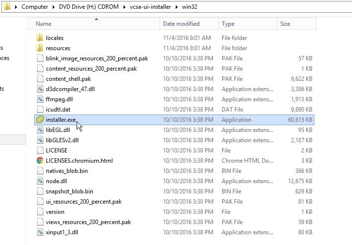 directory, navigate to the ‘vcsa-ui-installer\win32’ folder.Click on the isntaller.exe