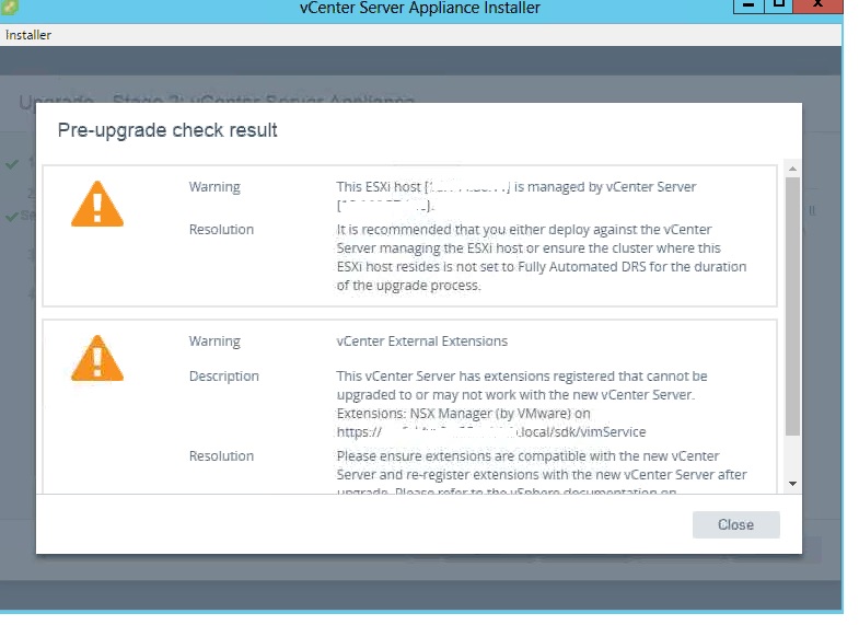 Same like PSC it will show the warnings to remove fully automate DRS and also it will highlight to make sure other extension will work with the new upgrade .