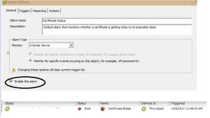 Also make sure under Alarm settings – Certificate Status – Enable this alarm is active so that according to the threshold we will get the alarm notification when the issue occurred.