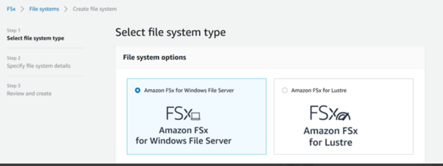 | Amazon FSx for Lustre | Amazon FSx for Windows File Server | |