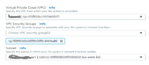 Encryption – Default [AWS Key Management Service (KMS) encryption key that protects your file system data at rest]
