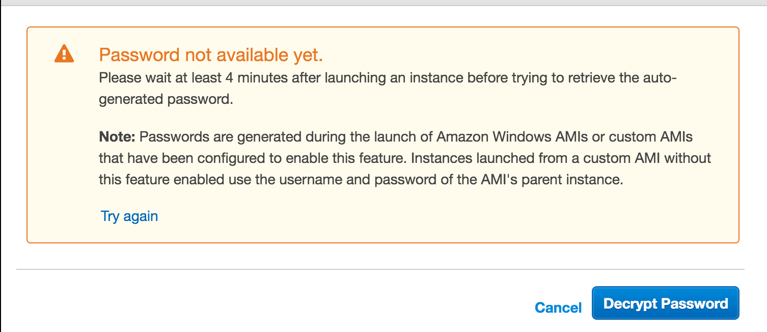 However, after we launch the instance, this setting will be disabled on EC2Launch and you will need to enable it before creating a custom AMI. If this setting is not enabled on EC2Launch before creating the AMI, you won’t be able to retrieve the Password from the console and the same password of the source/parent instance would need to be used to access the new instance. Ideally, we should be able to login to this instance using the local Administrator password which was captured from the parent instance during the creation of the AMI.