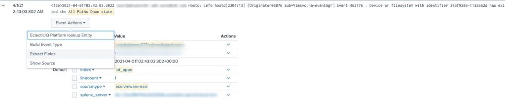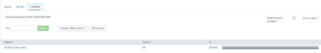 Recently we had “All path down issue” in one of our host and I was looking to find how many events and how long this issue was there in host and identified the below steps in the Splunk in which we can highlight the key word to find the list.We can easily get the details from the ESXi but I felt below steps will be useful for the other use cases.