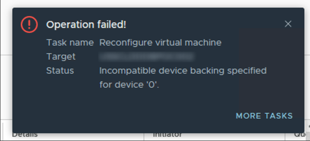 Followed the document https://docs.vmware.com/en/VMware-vSphere/6.5/vsphere-esxi-vcenter-server-651-setup-mscs.pdf to configure the windows cluster but it is getting failed with the error