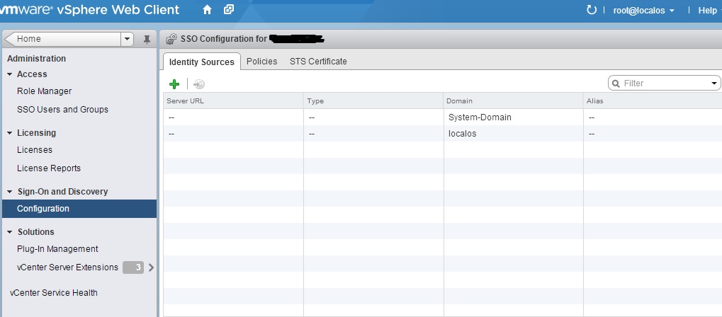 Log in to the vSphere Web Client using an Single Sign On Administrator. The default account is admin@System-Domain.Click Administration and go to the Sign On and Discovery section, click Configuration, then click the green Add Identity Source option at the top.
